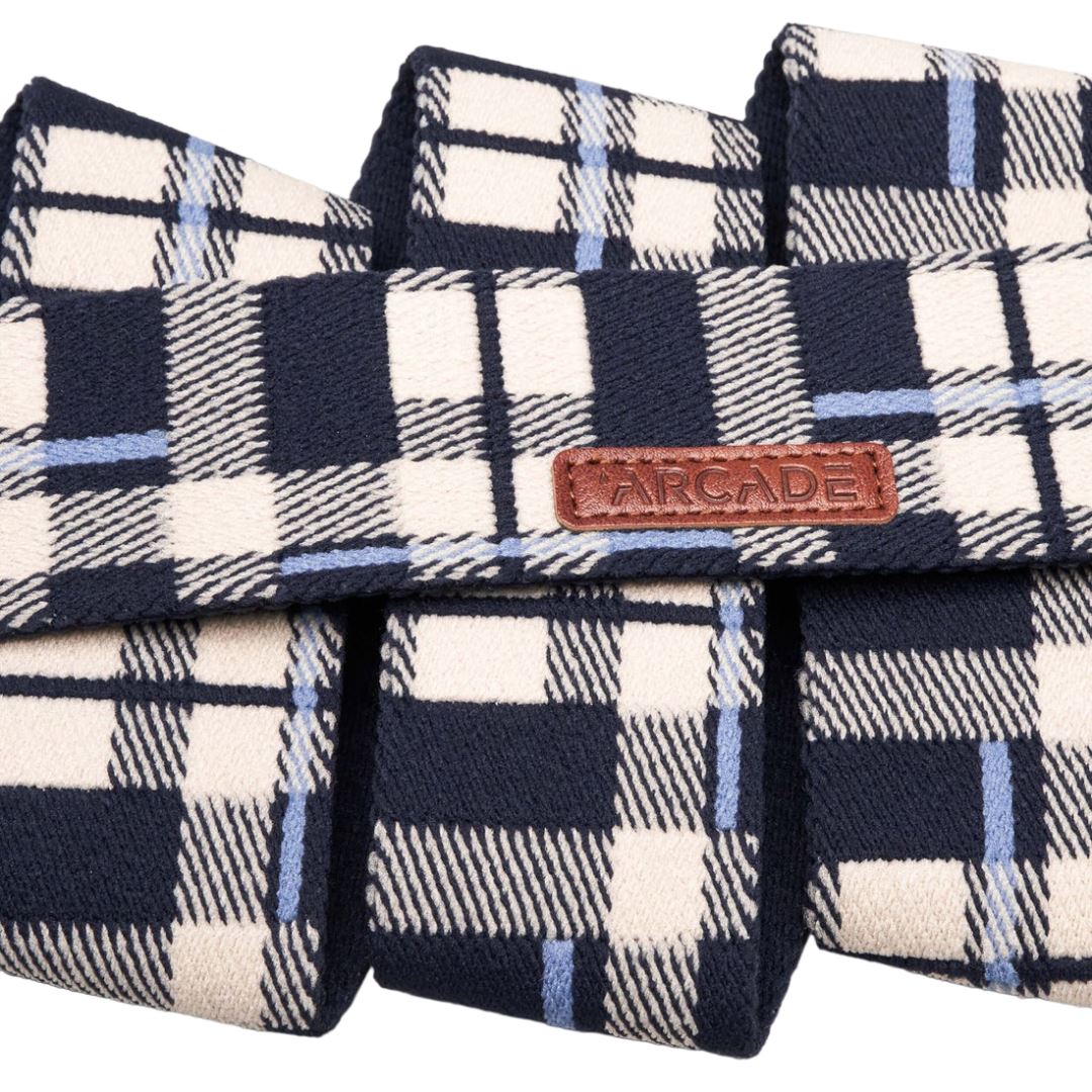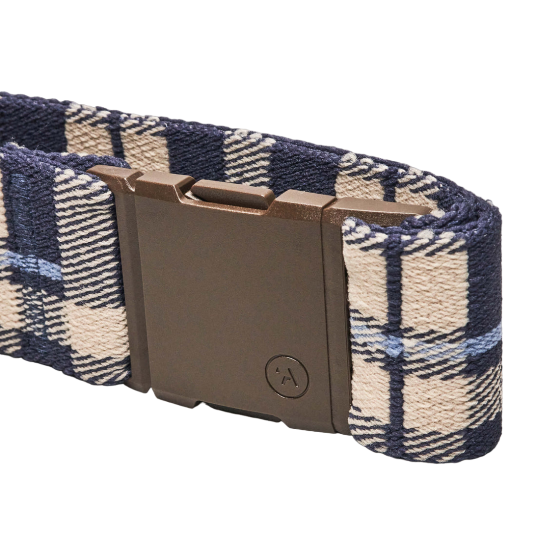This Arcade Plaid belt is a very comfortable belt. The belt has a good stretch, which makes it very easy to wear. This belt also has a patented A2 buckle. This buckle is easy to fasten and loosen. The buckle is contoured, with a low profile and shaped to follow the curve of the body for maximum comfort.