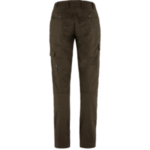 The Fjallraven Karla Pro Trousers Curved are versatile outdoor trousers for women. The pants have a slightly narrower waist and extra room on the seat and thighs. The Karla Pro Trousers have a well-thought-out cut, so that the trousers fit better and offer more freedom of movement – whether you are walking, squatting or taking long steps. It is made of wind- and water-repellent G-1000 Silent material, with a soft, brushed finish. The waist of the pants has a somewhat high cut, making the pants also ideal under a backpack. The pants have 6 pockets, which offer you space for all your important necessities. The bottom of the legs is unfinished and can be perfectly tailored to any length!