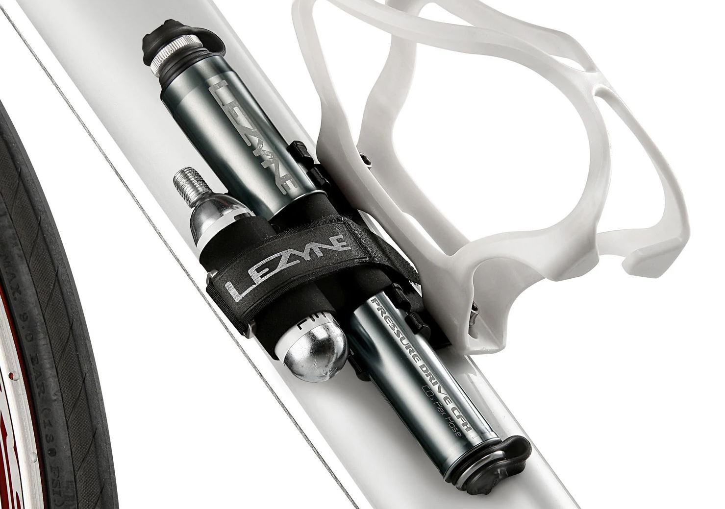 The Pressure Drive CFH can pump up to 8.3 bar/120 psi. The length of the Pressure Drive CFH is 190 mm and weighs 108 grams.