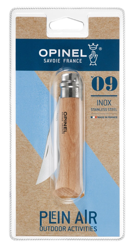 Opinel No.9 Stainless steel Inox pocket knife in blister – Beech wood