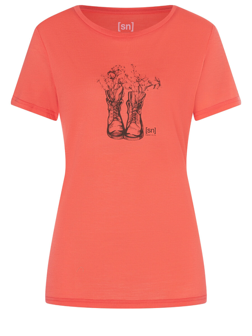 The Blossom Boots Tee is a women’s shirt from SuperNatural. This shirt is a great all-rounder, suitable for everyday use and various outdoor activities. The shirt is made of the supernatural merino mix 50% merino wool and 50% polyester.